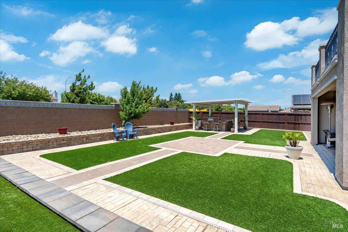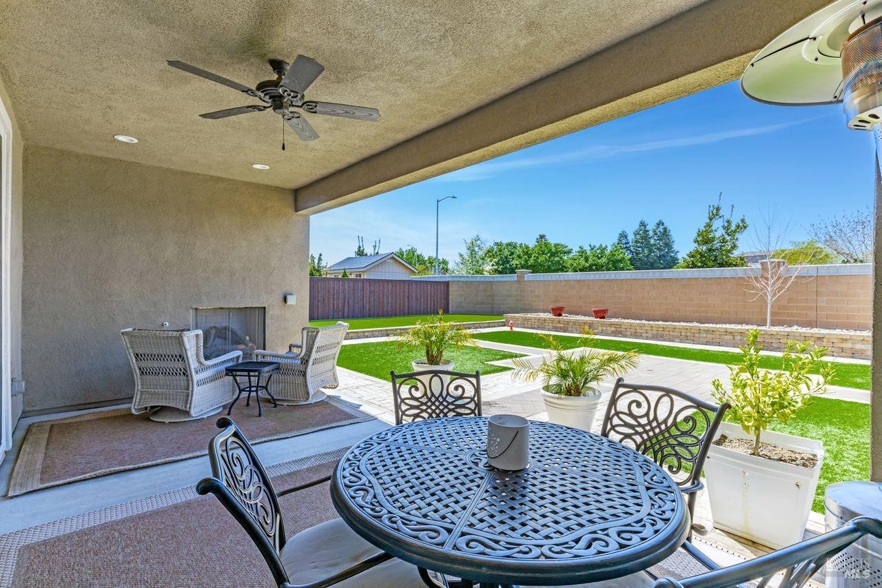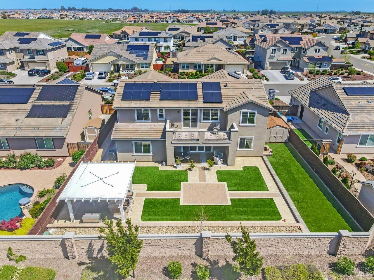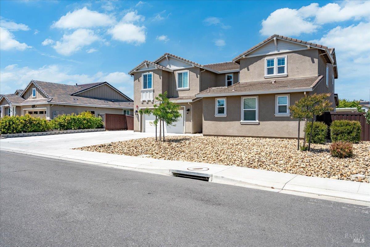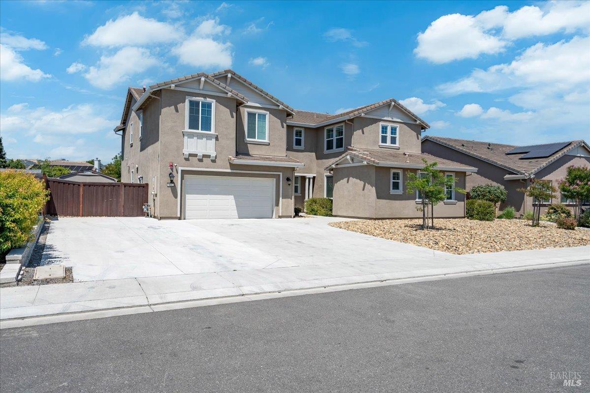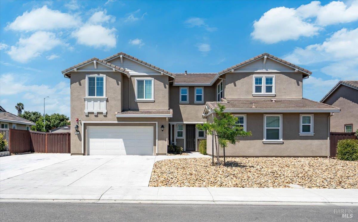 Discover refined living in this stunning six bedroom, four and one-half bath home in Vacaville's desirable Vanden Estates, within the sought-after Travis School District. Just about 5 years old and better than new, it offers premium upgrades and thoughtful design throughout. Two downstairs suites-one a attached ADU private unit with a kitchenette, living room, bedroom, and bathroom. The other a spacious and comfortable guest ensuite. The open-concept great room features a fireplace and center-opening glass doors to a covered patio with its own fireplace and built-in outdoor BBQ.