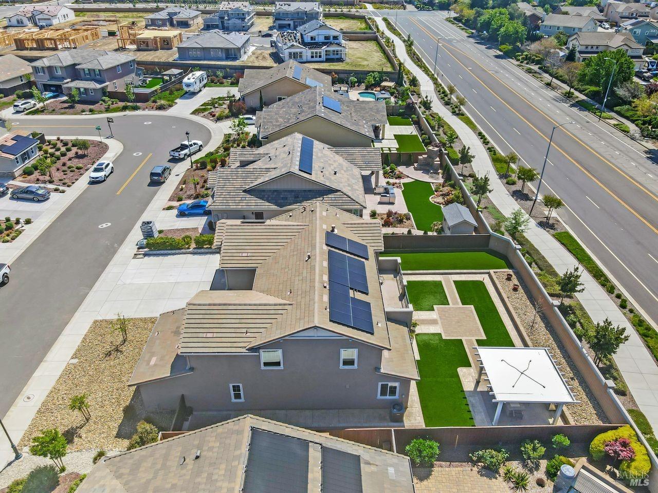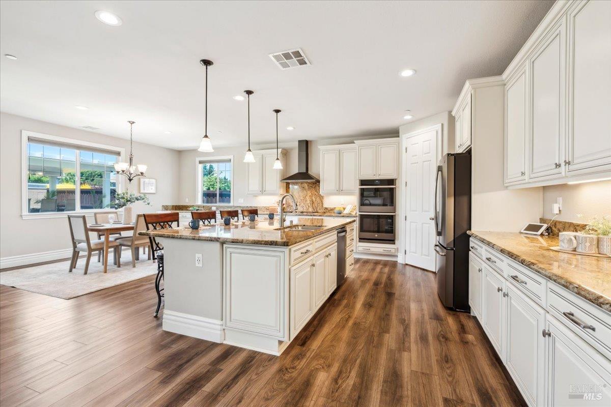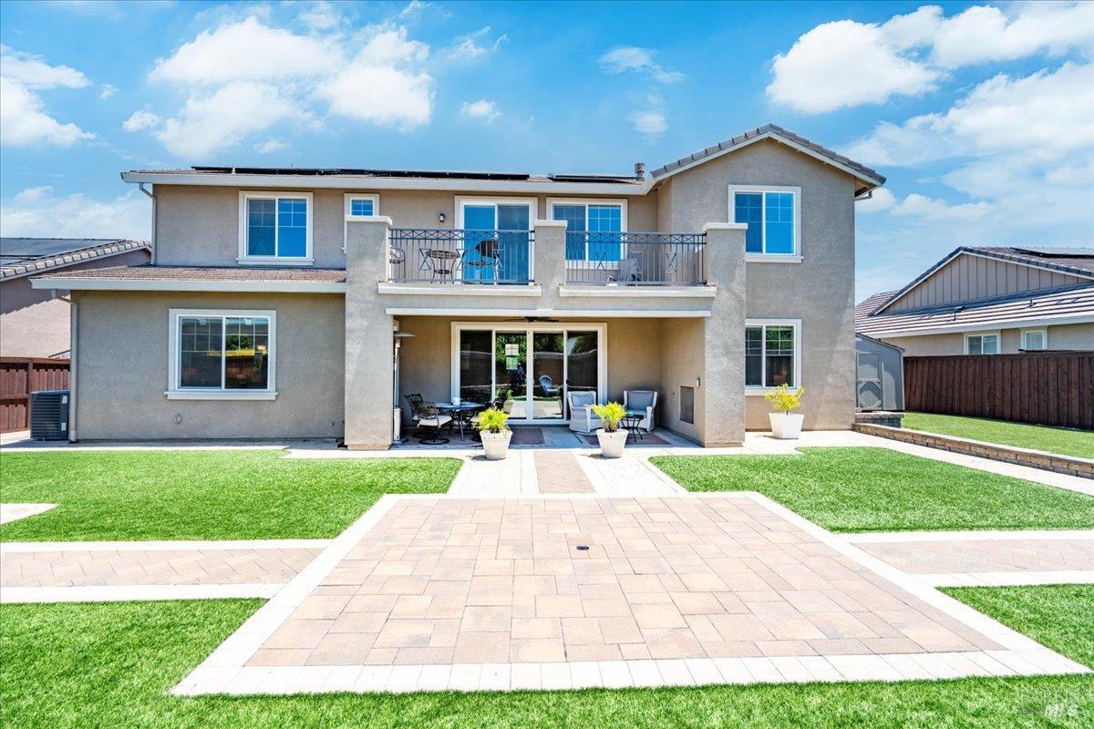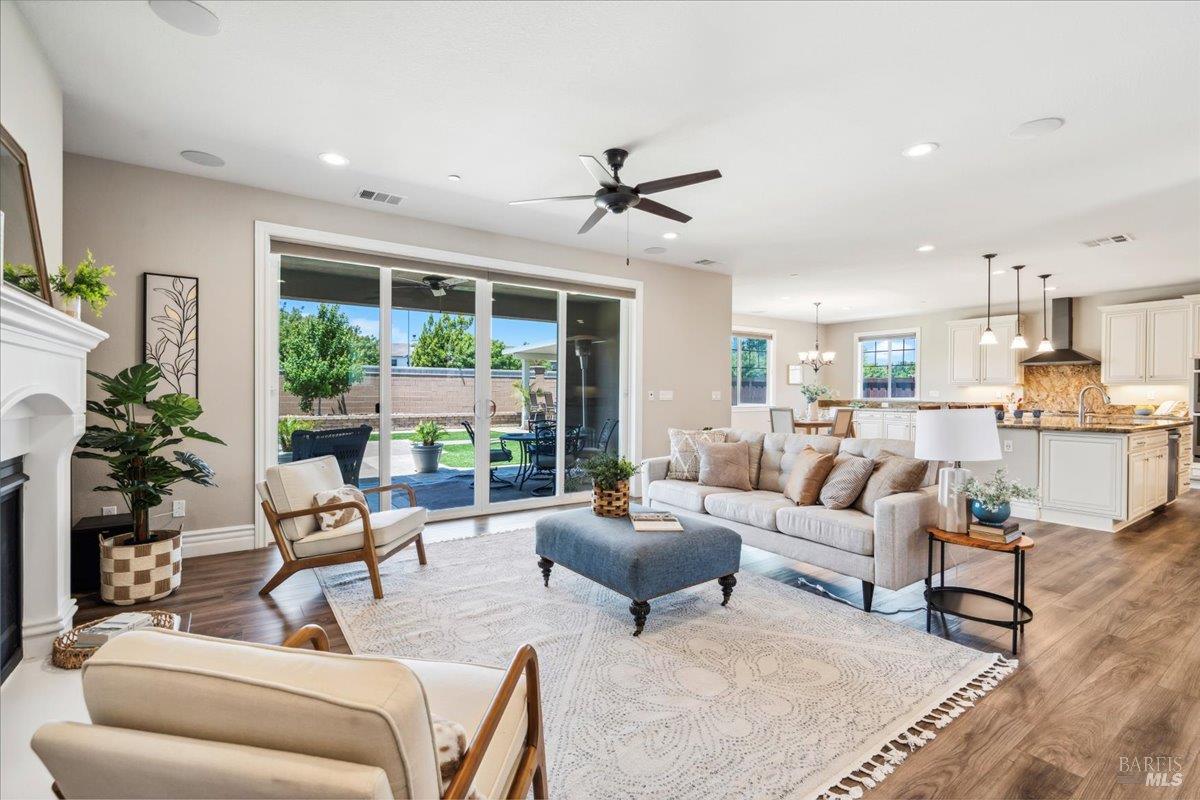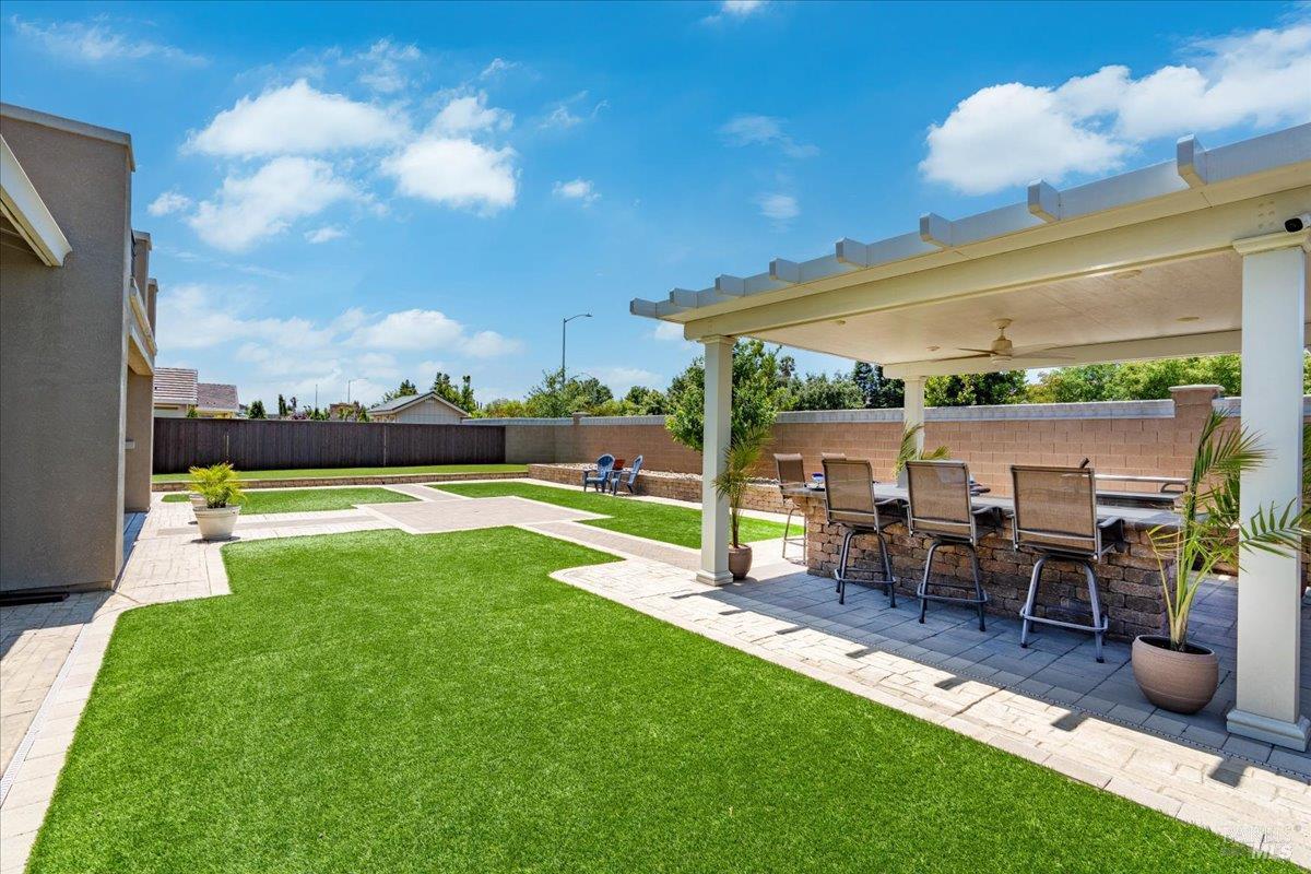 Discover refined living in this stunning six bedroom, four and one-half bath home in Vacaville's desirable Vanden Estates, within the sought-after Travis School District. Just about 5 years old and better than new, it offers premium upgrades and thoughtful design throughout. Two downstairs suites-one a attached ADU private unit with a kitchenette, living room, bedroom, and bathroom. The other a spacious and comfortable guest ensuite. The open-concept great room features a fireplace and center-opening glass doors to a covered patio with its own fireplace and built-in outdoor BBQ.