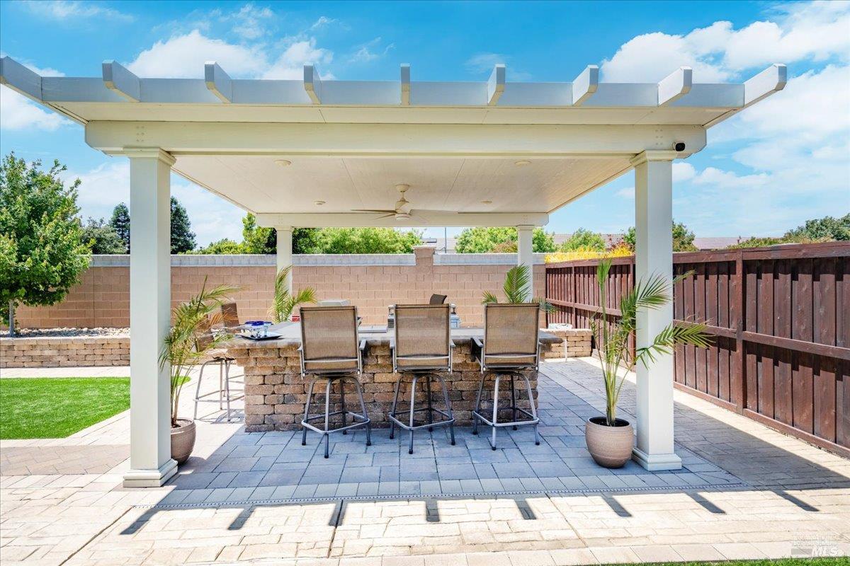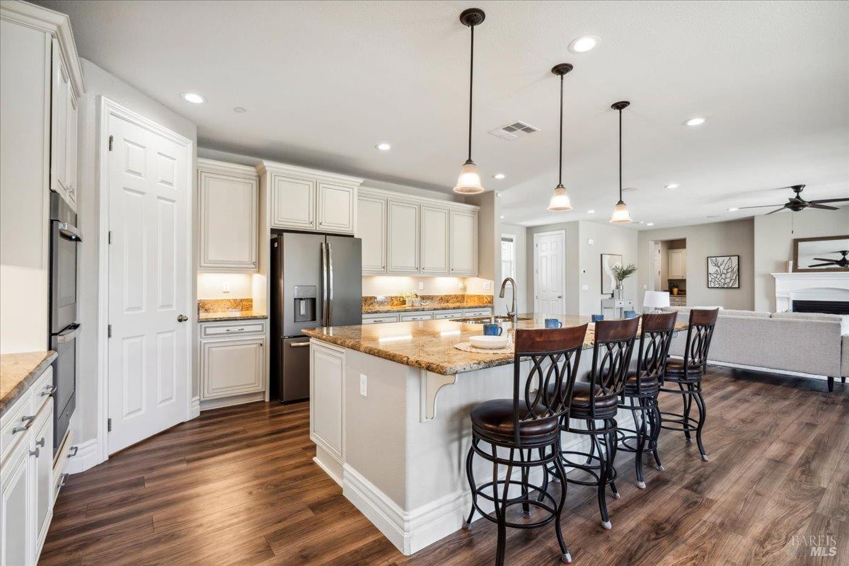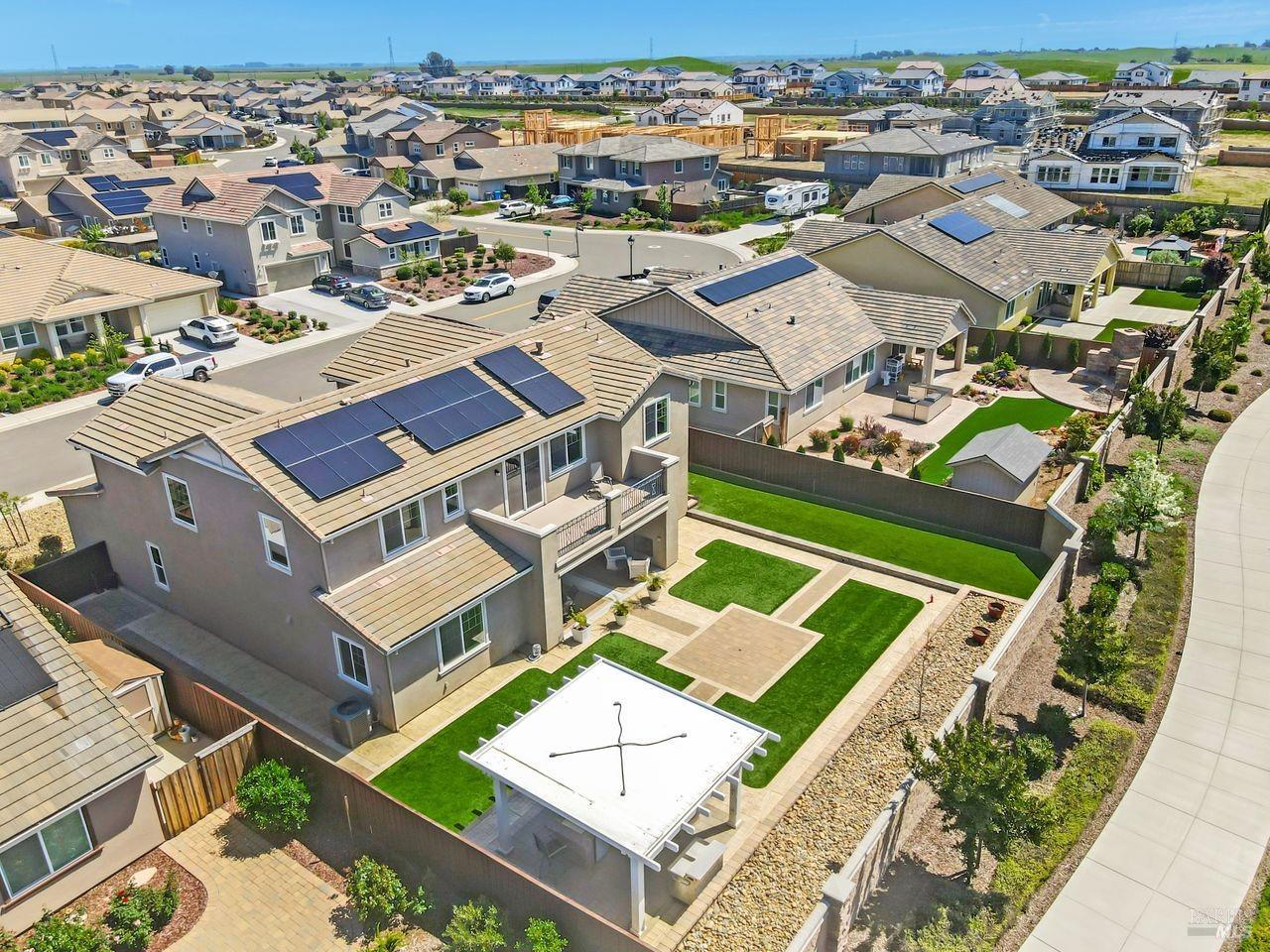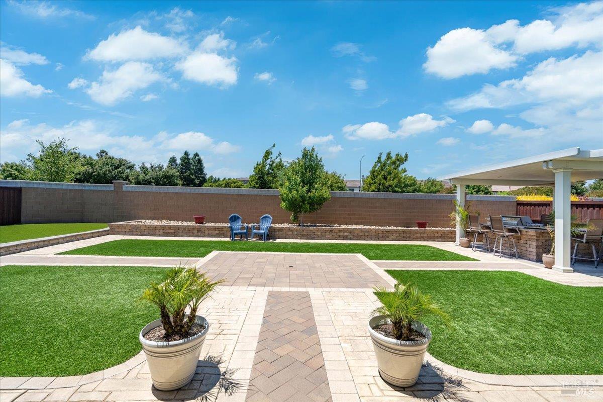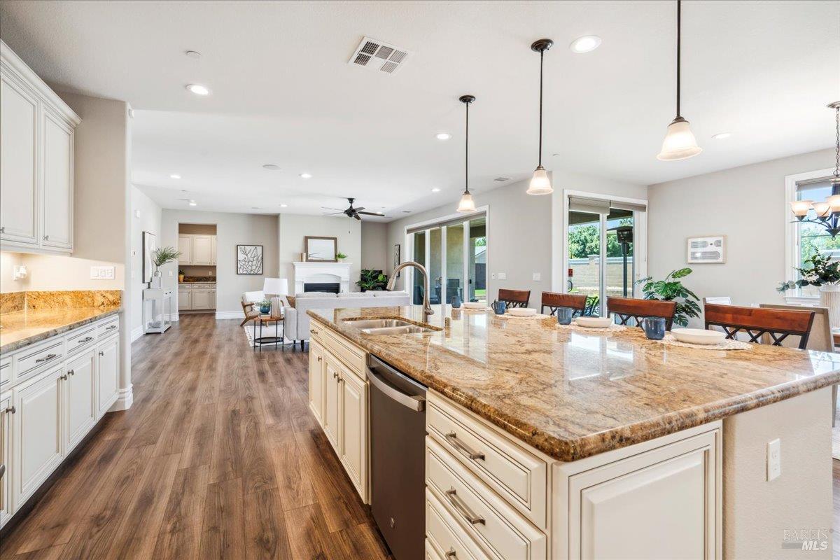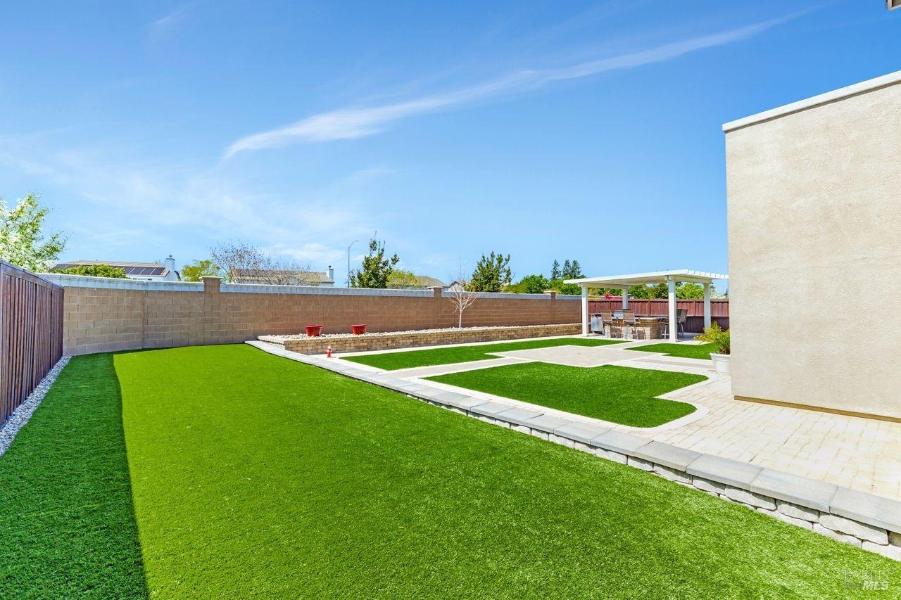 Discover refined living in this stunning six bedroom, four and one-half bath home in Vacaville's desirable Vanden Estates, within the sought-after Travis School District. Just about 5 years old and better than new, it offers premium upgrades and thoughtful design throughout. Two downstairs suites-one a attached ADU private unit with a kitchenette, living room, bedroom, and bathroom. The other a spacious and comfortable guest ensuite. The open-concept great room features a fireplace and center-opening glass doors to a covered patio with its own fireplace and built-in outdoor BBQ.