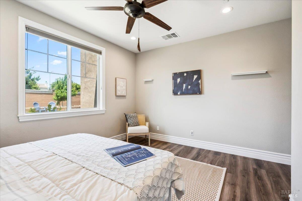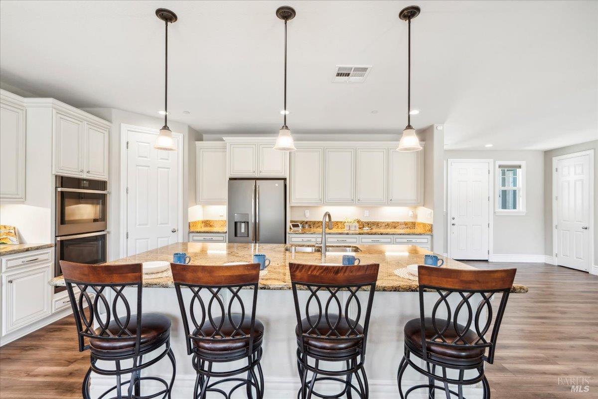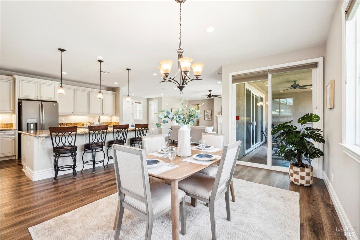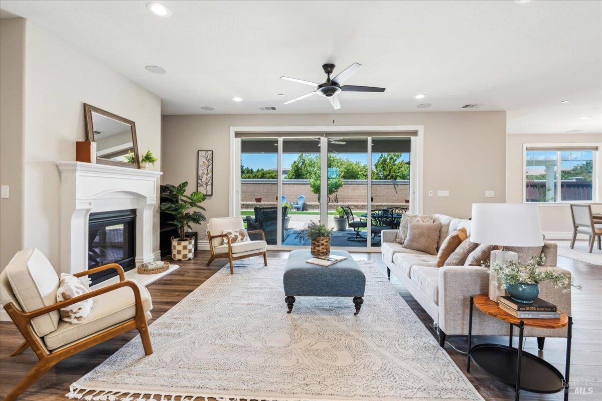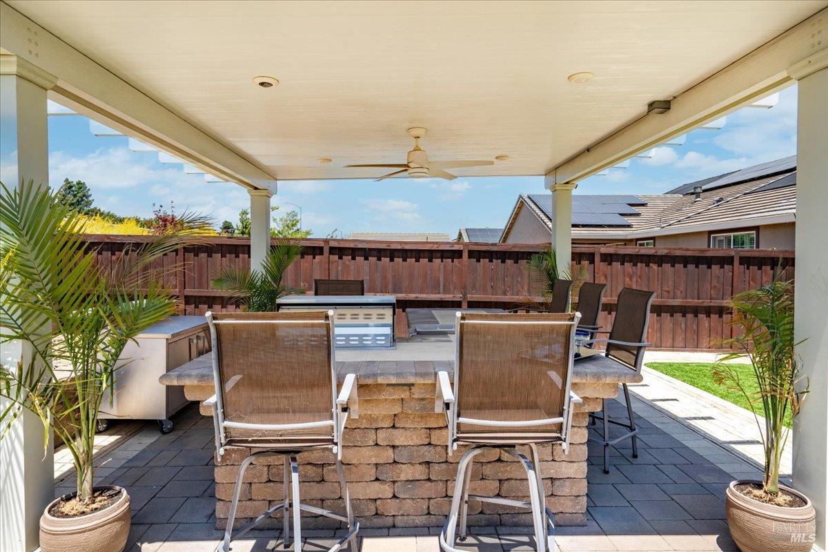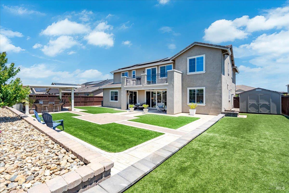 Discover refined living in this stunning six bedroom, four and one-half bath home in Vacaville's desirable Vanden Estates, within the sought-after Travis School District. Just about 5 years old and better than new, it offers premium upgrades and thoughtful design throughout. Two downstairs suites-one a attached ADU private unit with a kitchenette, living room, bedroom, and bathroom. The other a spacious and comfortable guest ensuite. The open-concept great room features a fireplace and center-opening glass doors to a covered patio with its own fireplace and built-in outdoor BBQ.