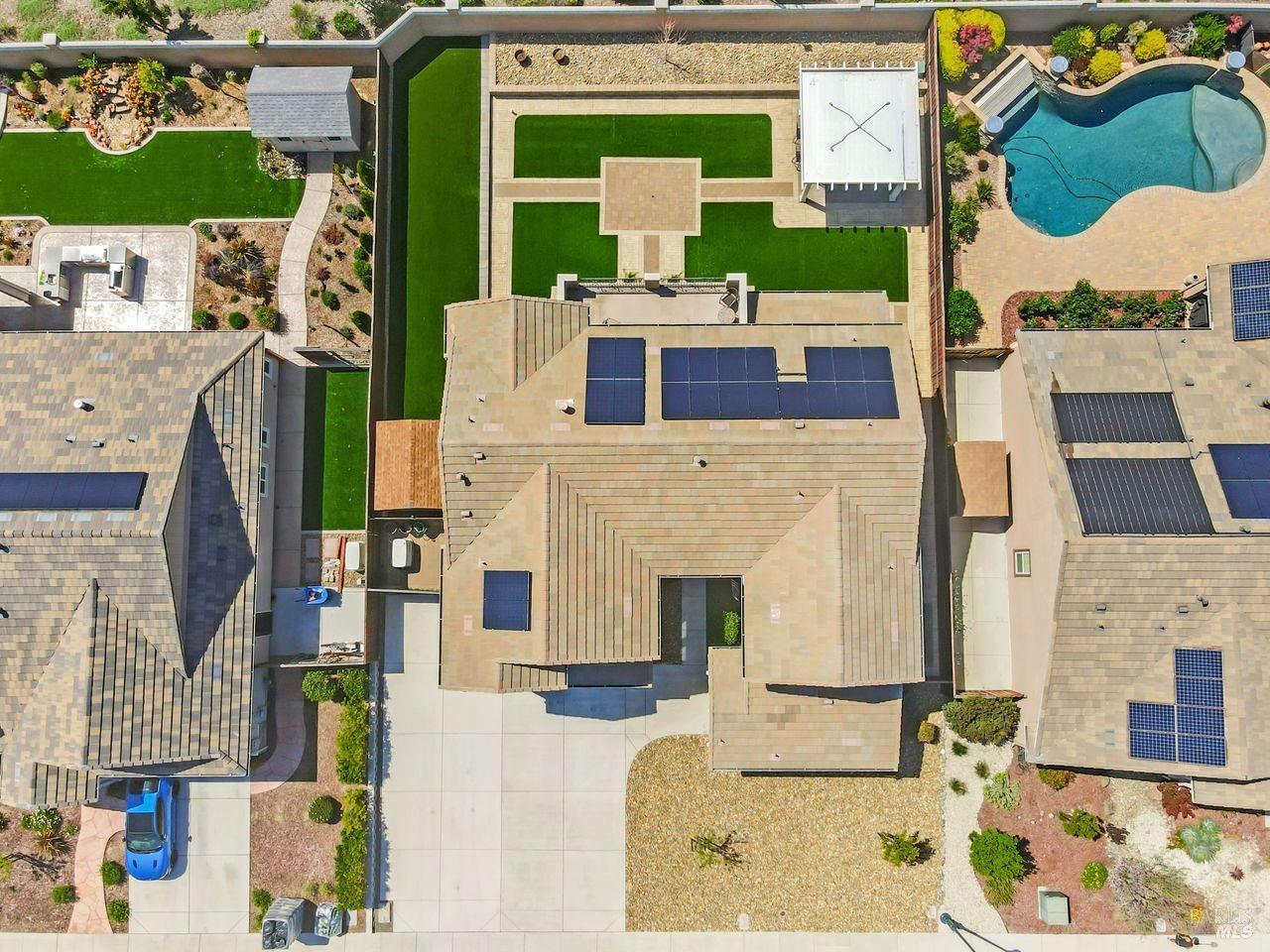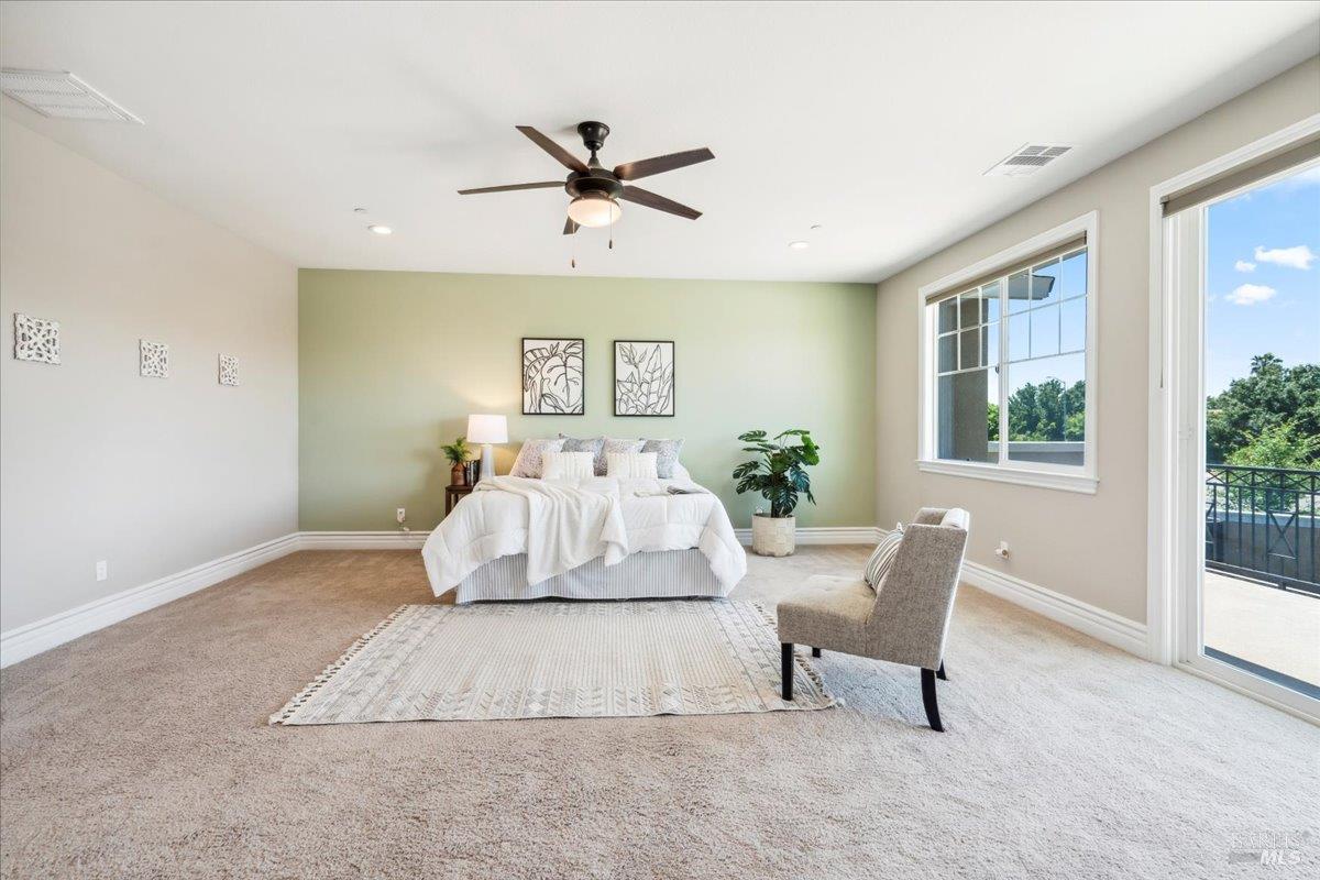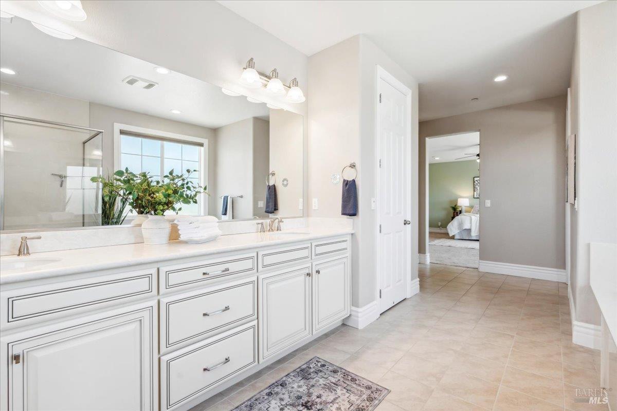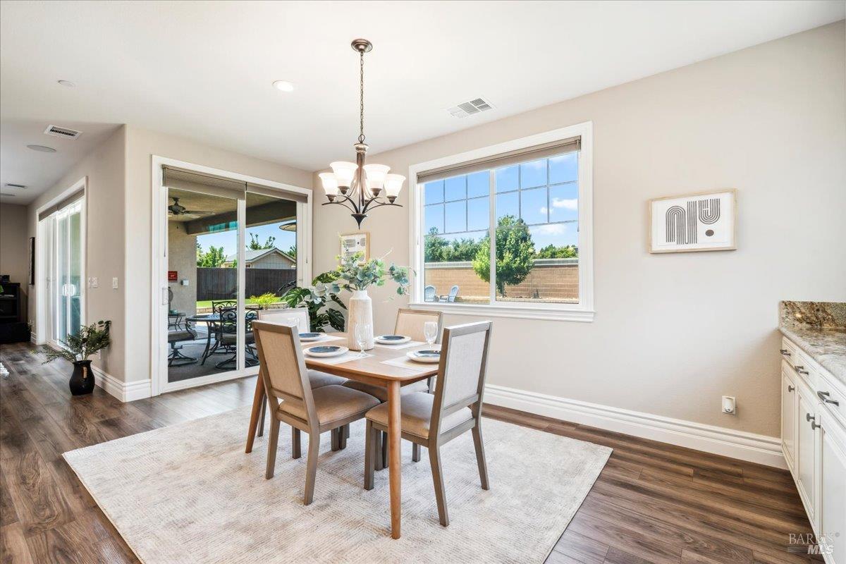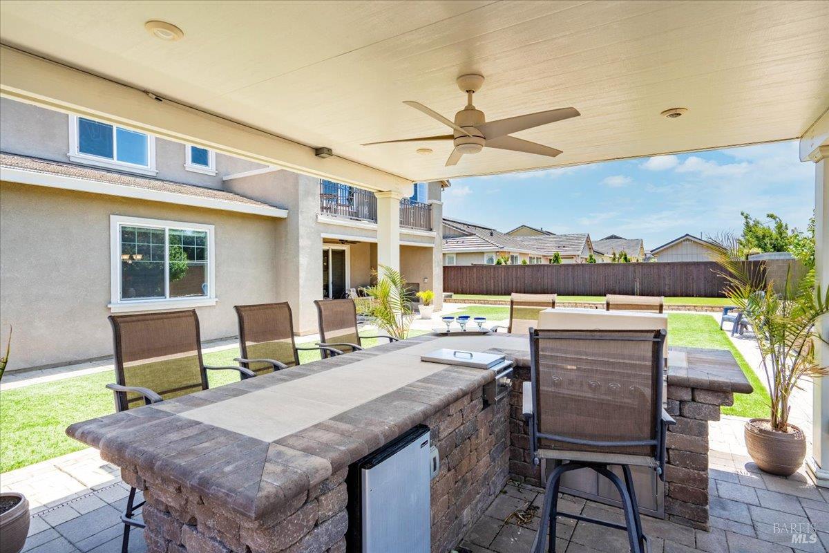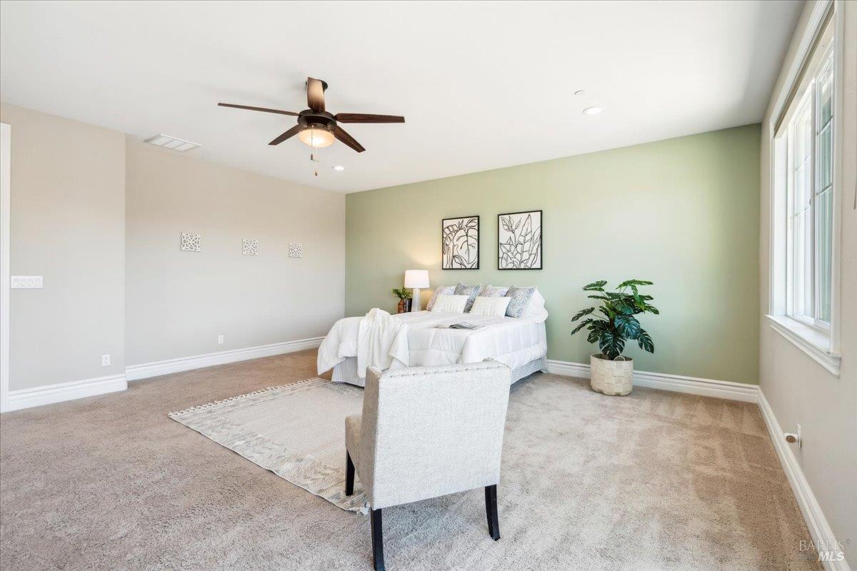 Discover refined living in this stunning six bedroom, four and one-half bath home in Vacaville's desirable Vanden Estates, within the sought-after Travis School District. Just about 5 years old and better than new, it offers premium upgrades and thoughtful design throughout. Two downstairs suites-one a attached ADU private unit with a kitchenette, living room, bedroom, and bathroom. The other a spacious and comfortable guest ensuite. The open-concept great room features a fireplace and center-opening glass doors to a covered patio with its own fireplace and built-in outdoor BBQ.