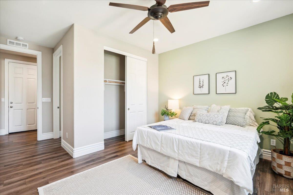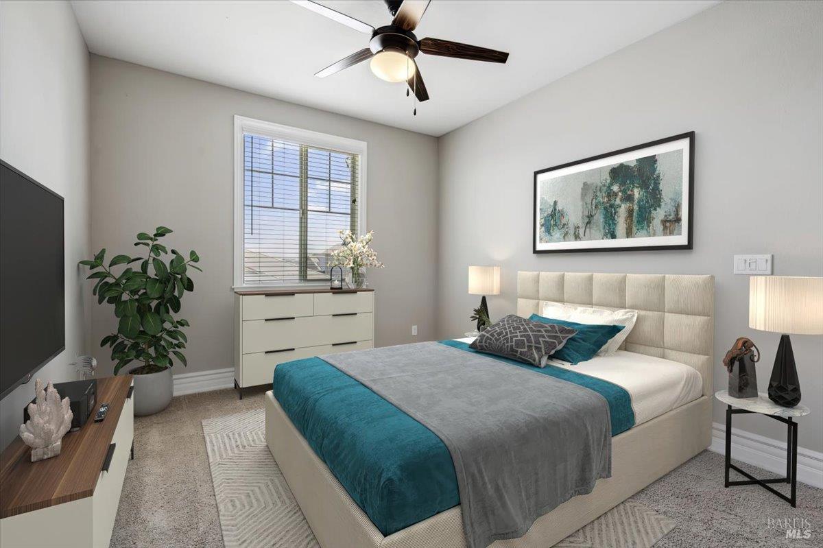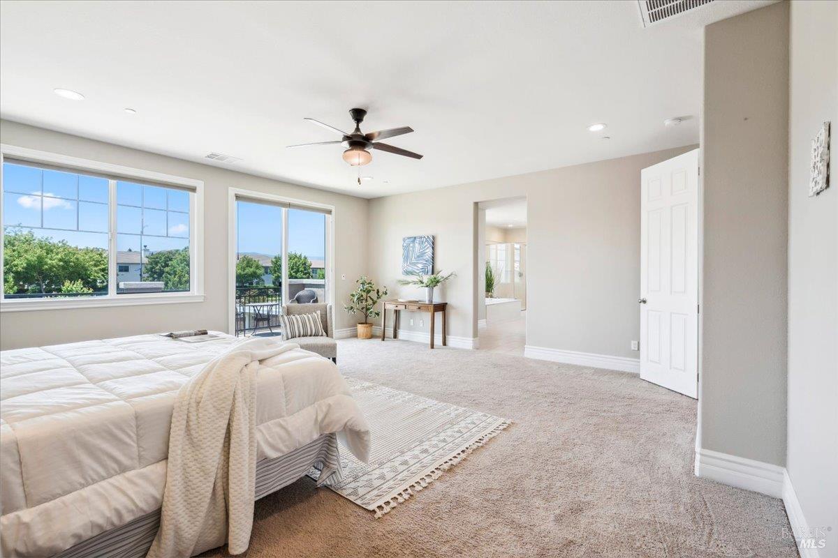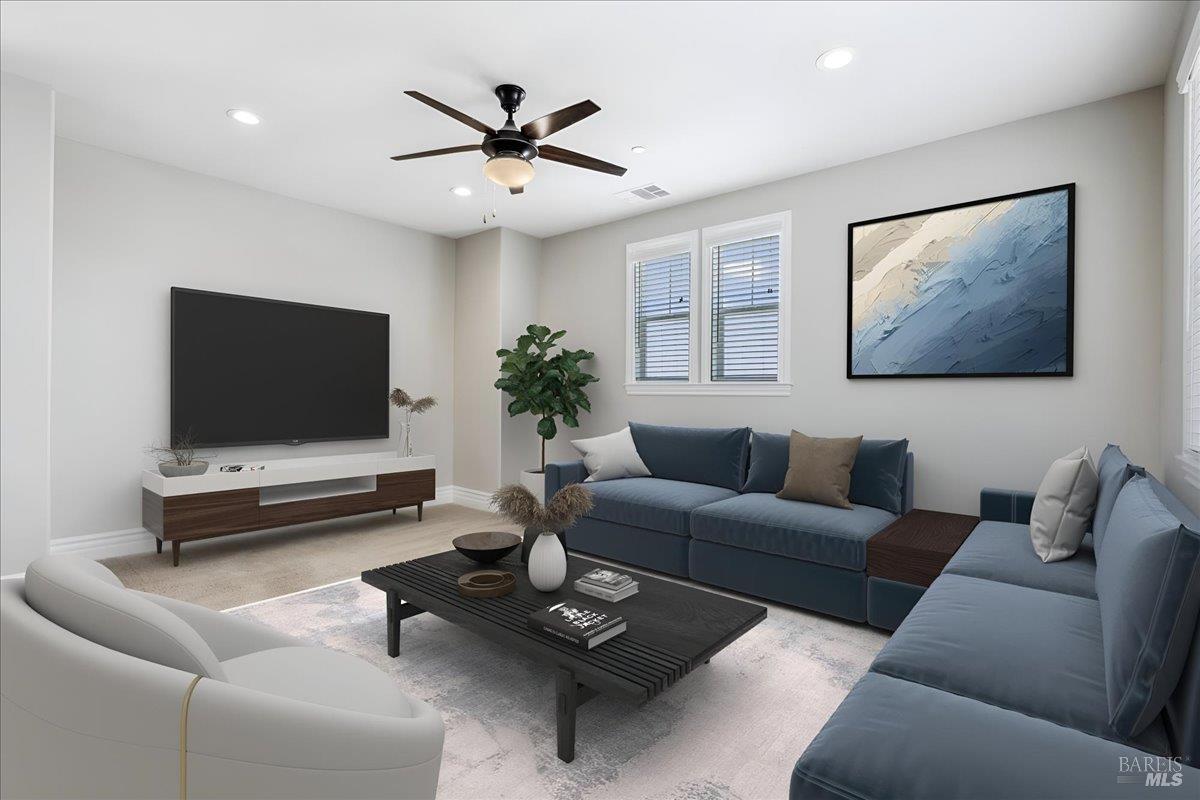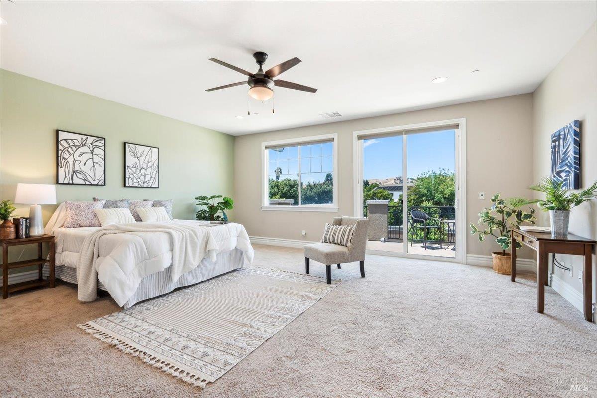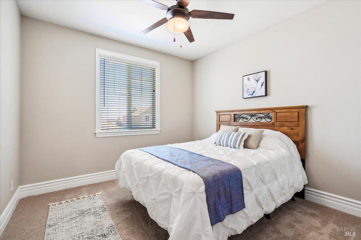 Discover refined living in this stunning six bedroom, four and one-half bath home in Vacaville's desirable Vanden Estates, within the sought-after Travis School District. Just about 5 years old and better than new, it offers premium upgrades and thoughtful design throughout. Two downstairs suites-one a attached ADU private unit with a kitchenette, living room, bedroom, and bathroom. The other a spacious and comfortable guest ensuite. The open-concept great room features a fireplace and center-opening glass doors to a covered patio with its own fireplace and built-in outdoor BBQ.