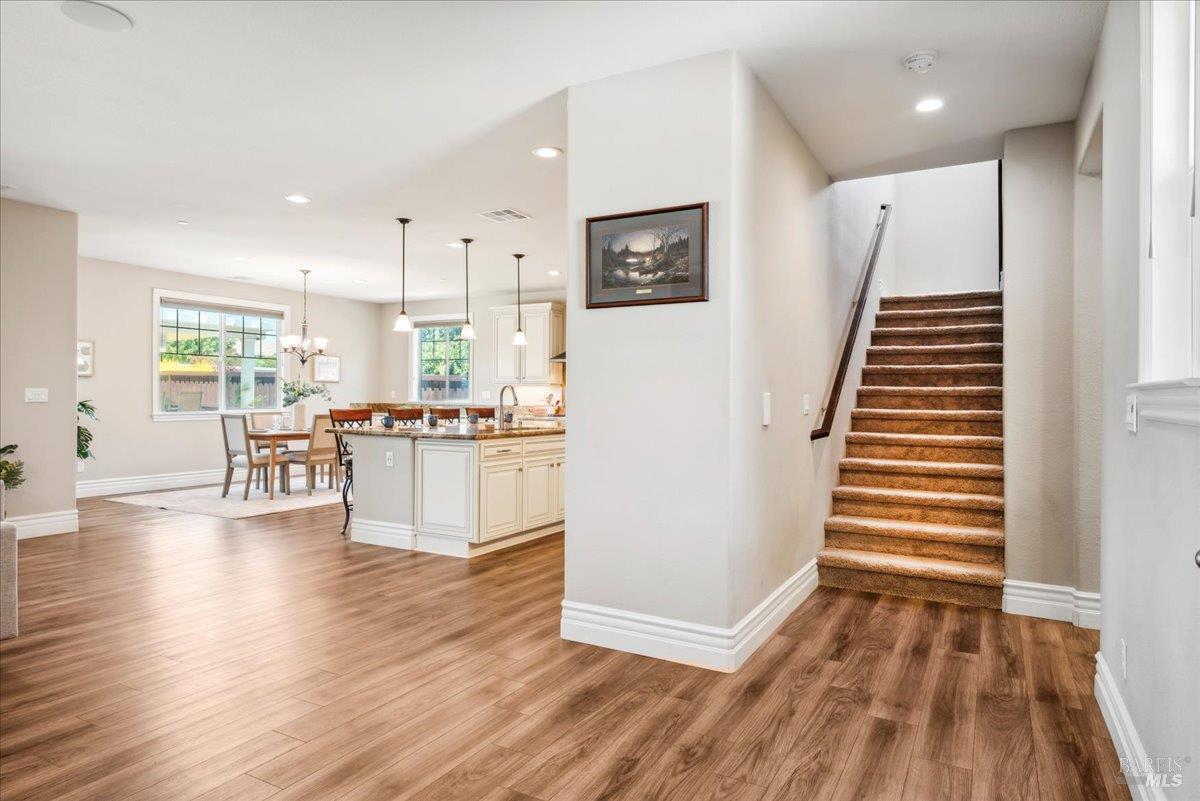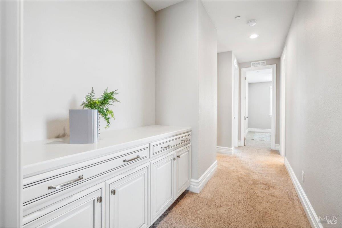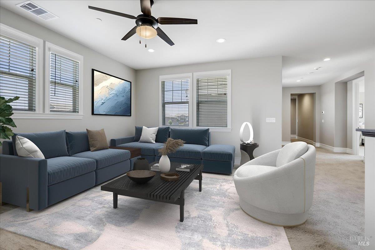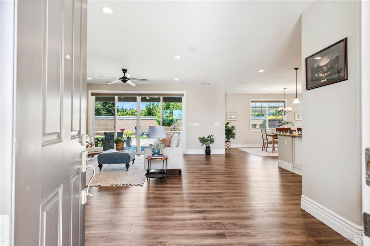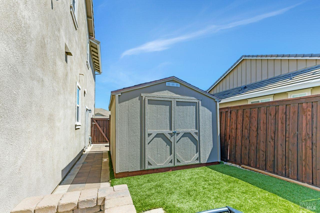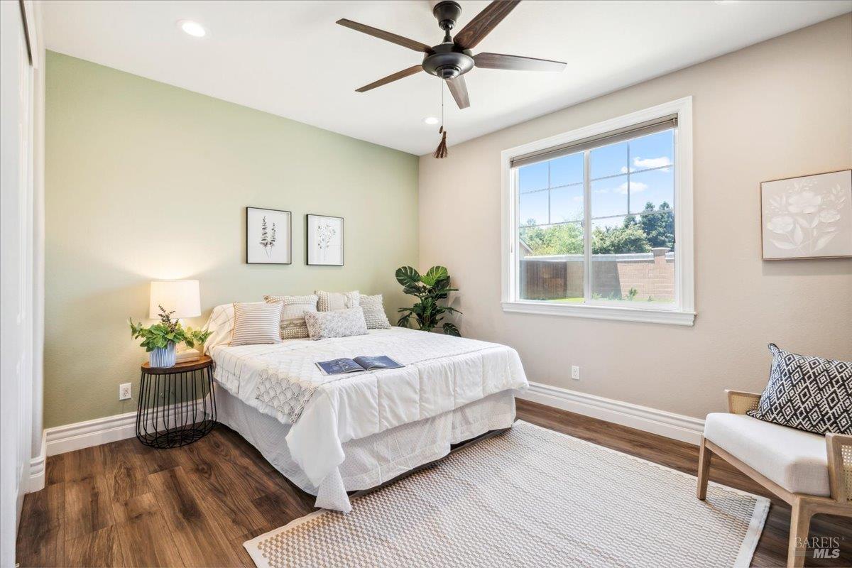 Discover refined living in this stunning six bedroom, four and one-half bath home in Vacaville's desirable Vanden Estates, within the sought-after Travis School District. Just about 5 years old and better than new, it offers premium upgrades and thoughtful design throughout. Two downstairs suites-one a attached ADU private unit with a kitchenette, living room, bedroom, and bathroom. The other a spacious and comfortable guest ensuite. The open-concept great room features a fireplace and center-opening glass doors to a covered patio with its own fireplace and built-in outdoor BBQ.