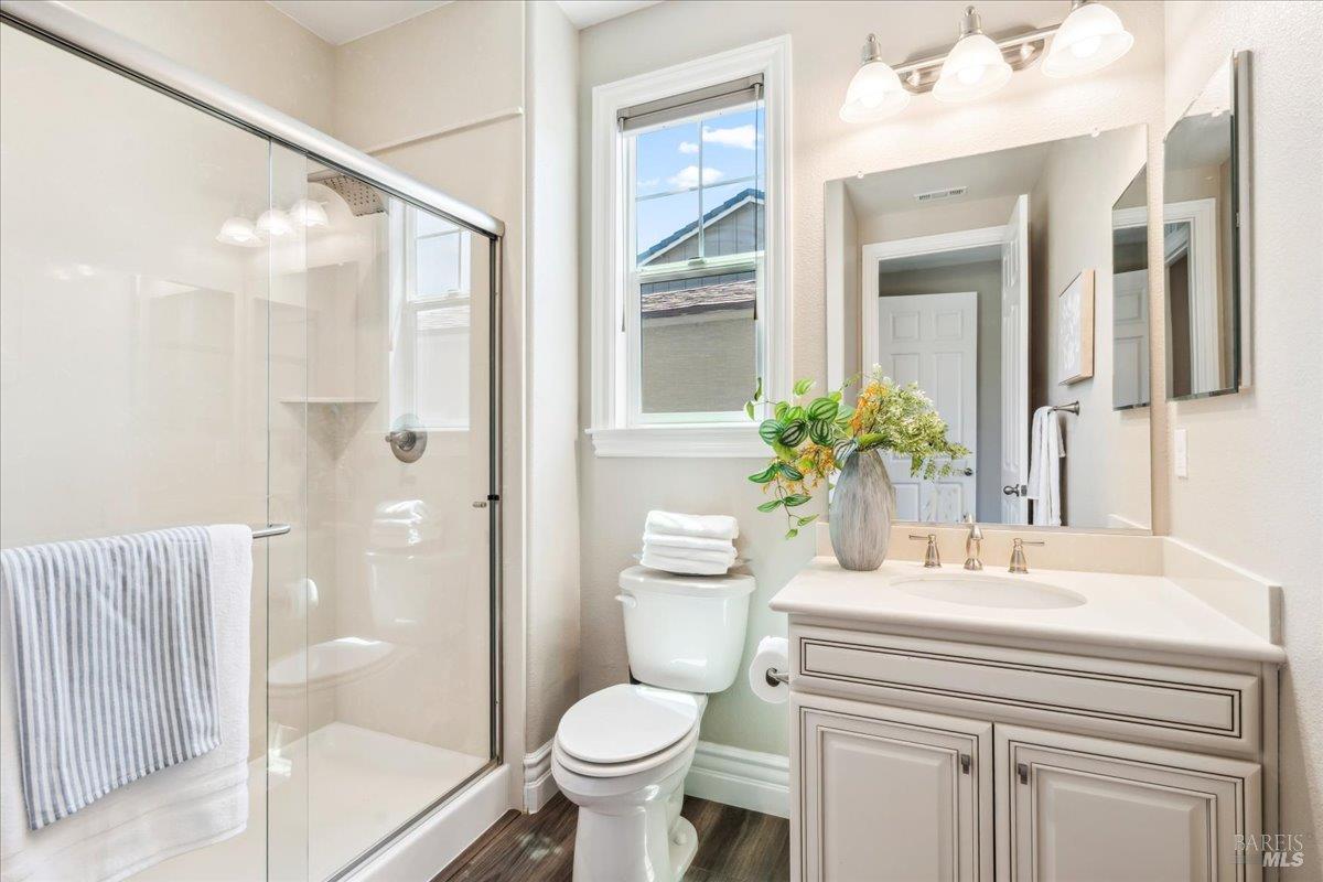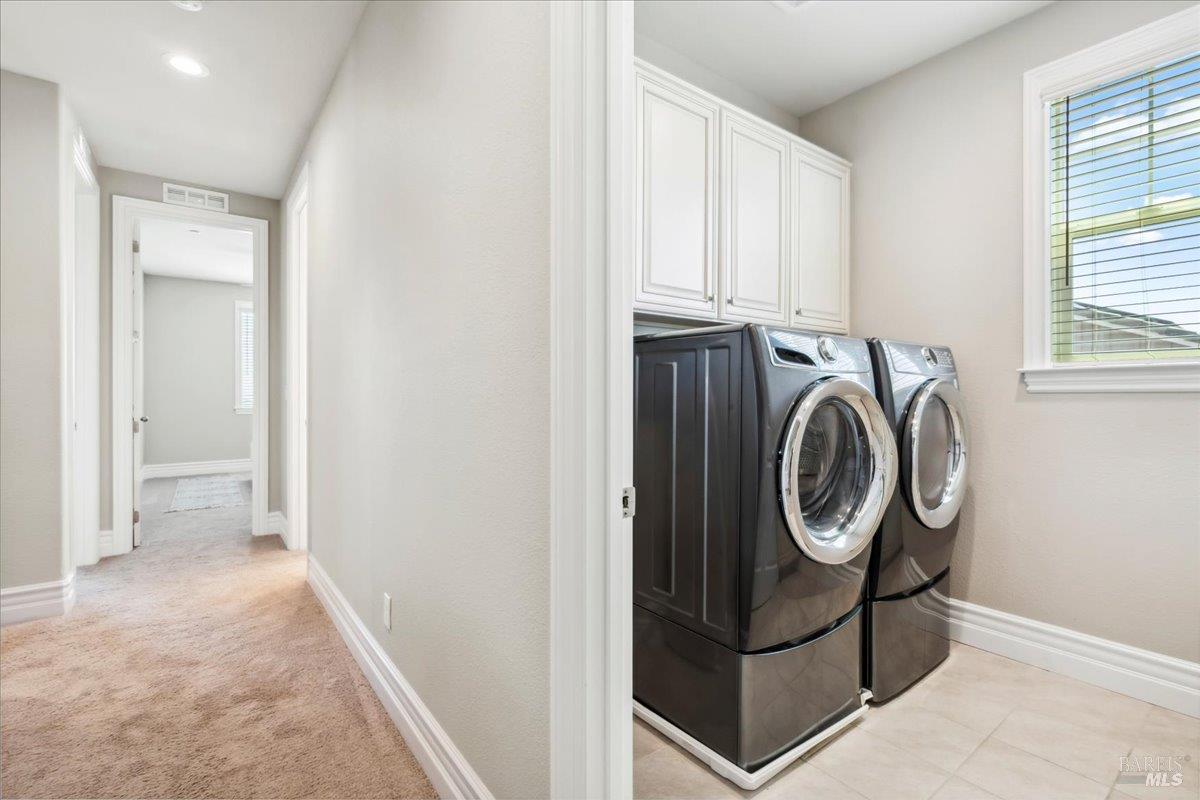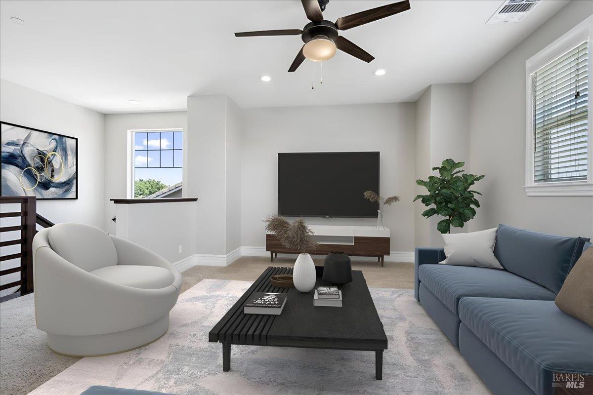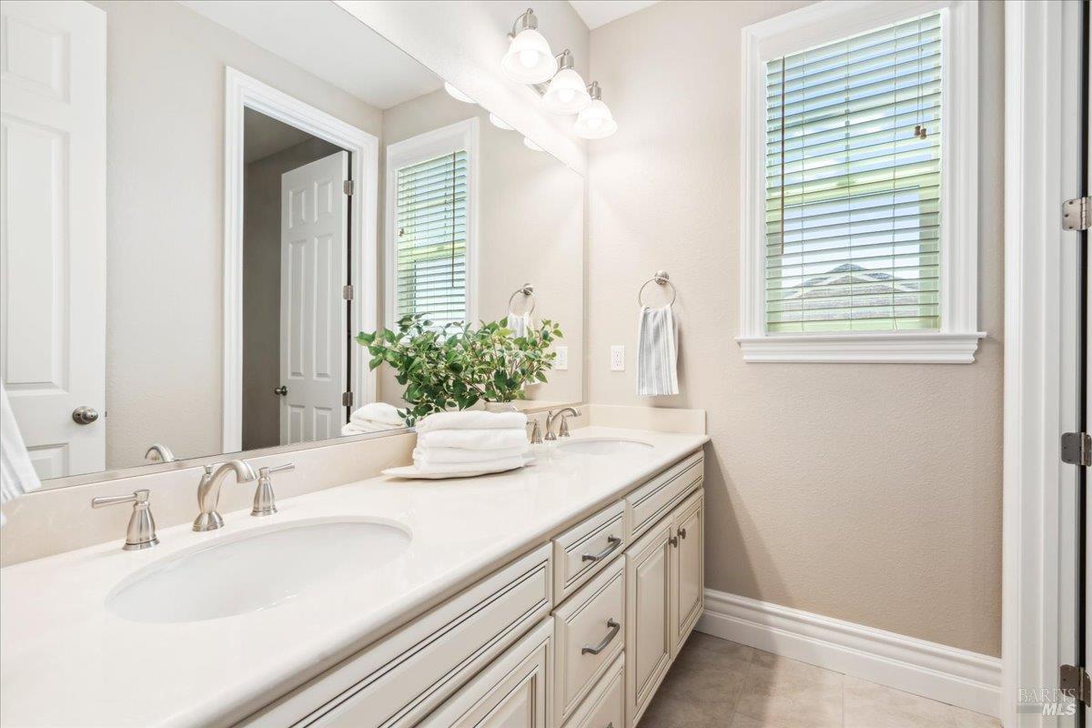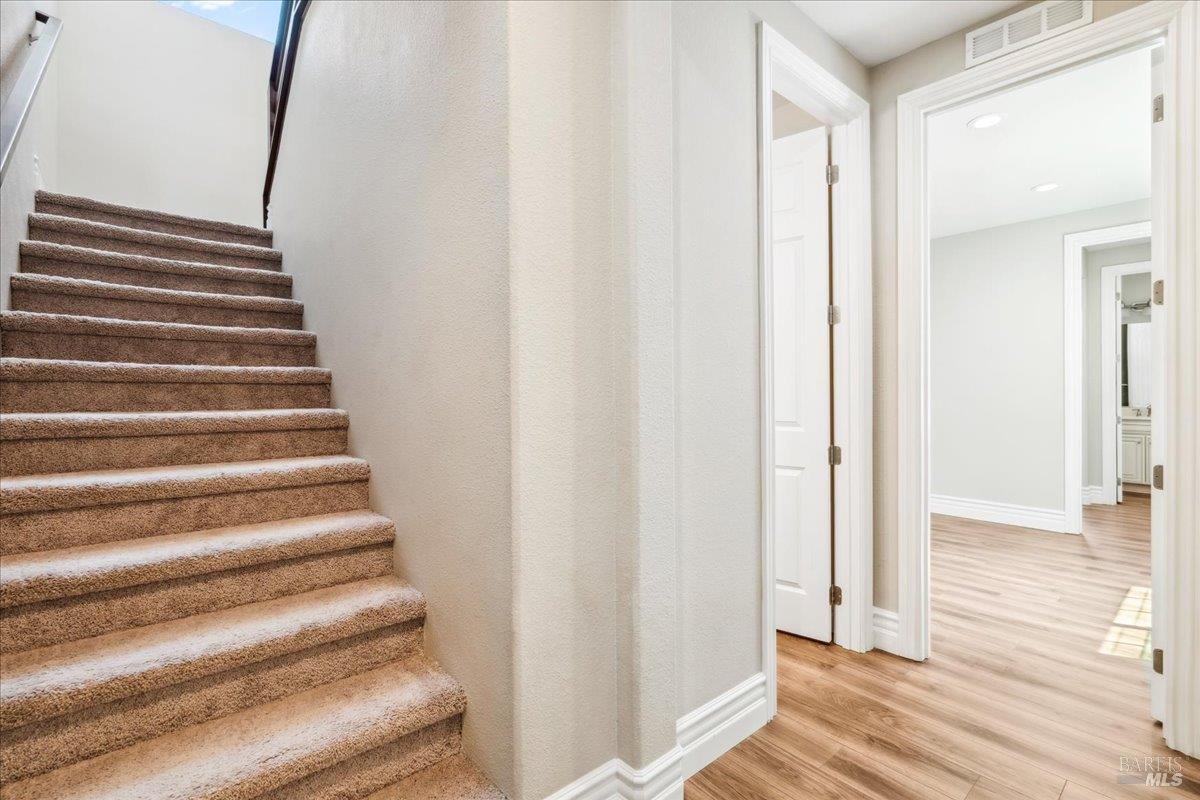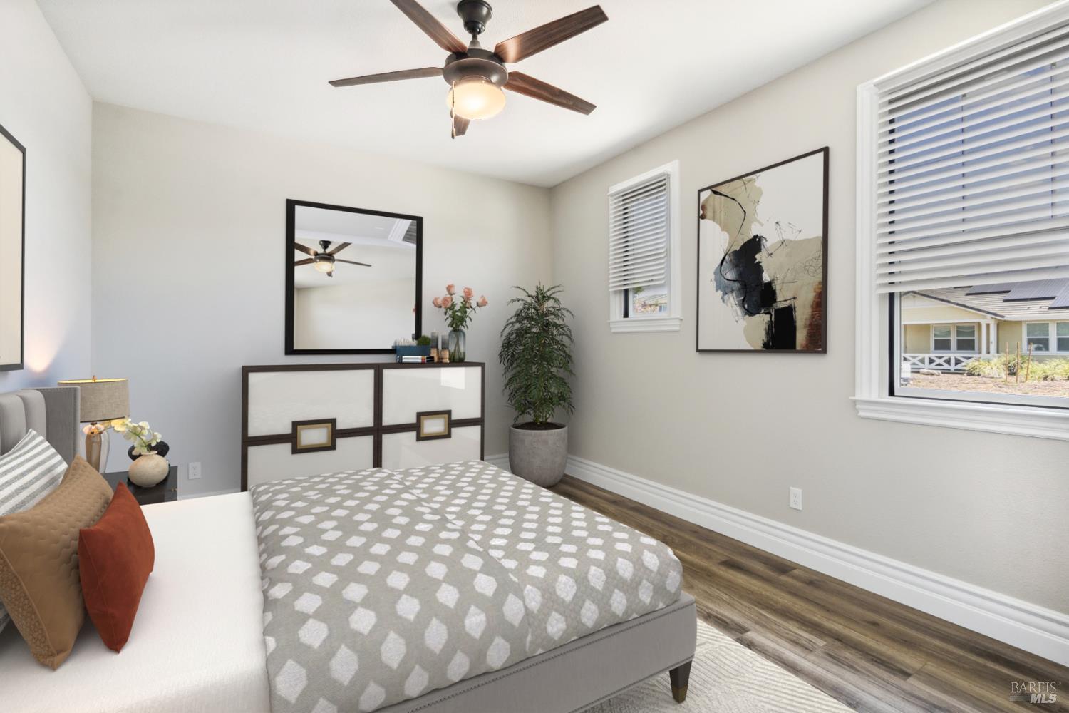Discover refined living in this stunning six bedroom, four and one-half bath home in Vacaville's desirable Vanden Estates, within the sought-after Travis School District. Just about 5 years old and better than new, it offers premium upgrades and thoughtful design throughout. Two downstairs suites-one a attached ADU private unit with a kitchenette, living room, bedroom, and bathroom. The other a spacious and comfortable guest ensuite. The open-concept great room features a fireplace and center-opening glass doors to a covered patio with its own fireplace and built-in outdoor BBQ.